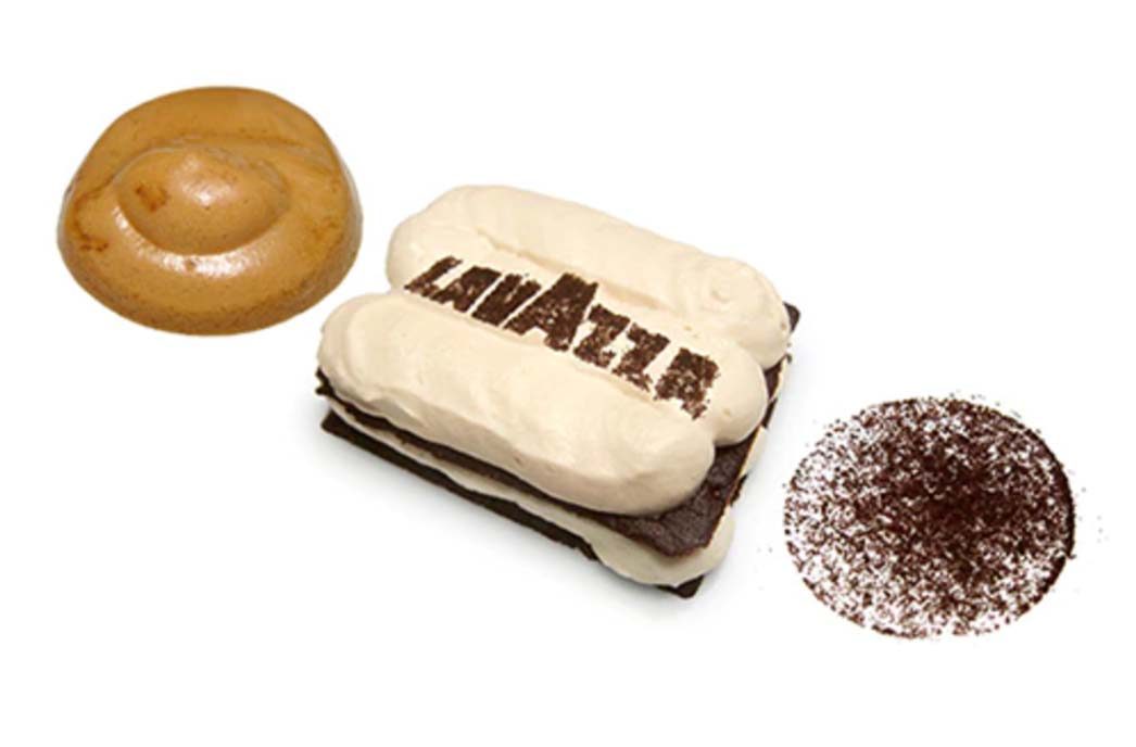 Terrain de Café, eine kreative Idee des Lavazza Training Centers, ist eine Hommage an das prestigeträchtigste Sandplatz-Turnier. Eine Haselnuss-Ganache wird mit Kaffee bedeckt, und ihr orangefarbener Überzug aus Kaffee symbolisiert den Sandplatz des Roland-Garros-Turniers. Für die Kaffeeschicht wird ein neuer salziger Crumble zubereitet, der zu 30 % aus Kaffeesatz (von bereits gebrühtem Kaffee) besteht. Der auf dieses Spielfeld gelegte Tennisball ist nichts anderes als eine mit weißer Schokolade und Zitrone überzogene Haselnusspraline. Die Kreation stammt von G. Gabino.
