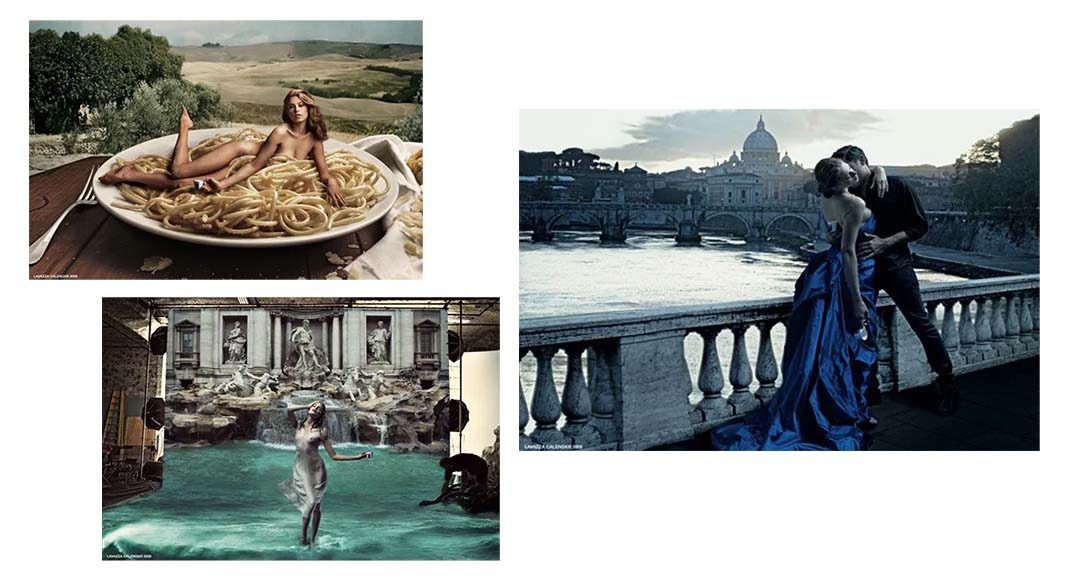 Der unverwechselbare Stil von David LaChapelle kommt im Lavazza Kalender 2002 zweifelsohne zum Vorschein. Seine surreale und ironische Darstellungsweise sowie knallige, leuchtende und satte Farben führen oft zu extravaganten Fotos im Barockstil, sodass er auch als der Fellini der Fotografie bezeichnet wird.