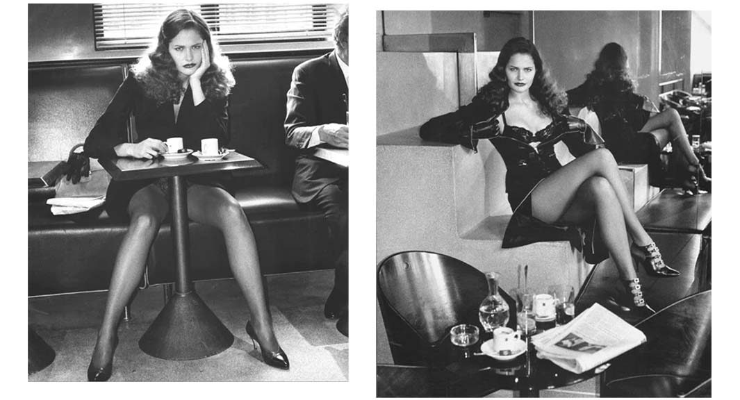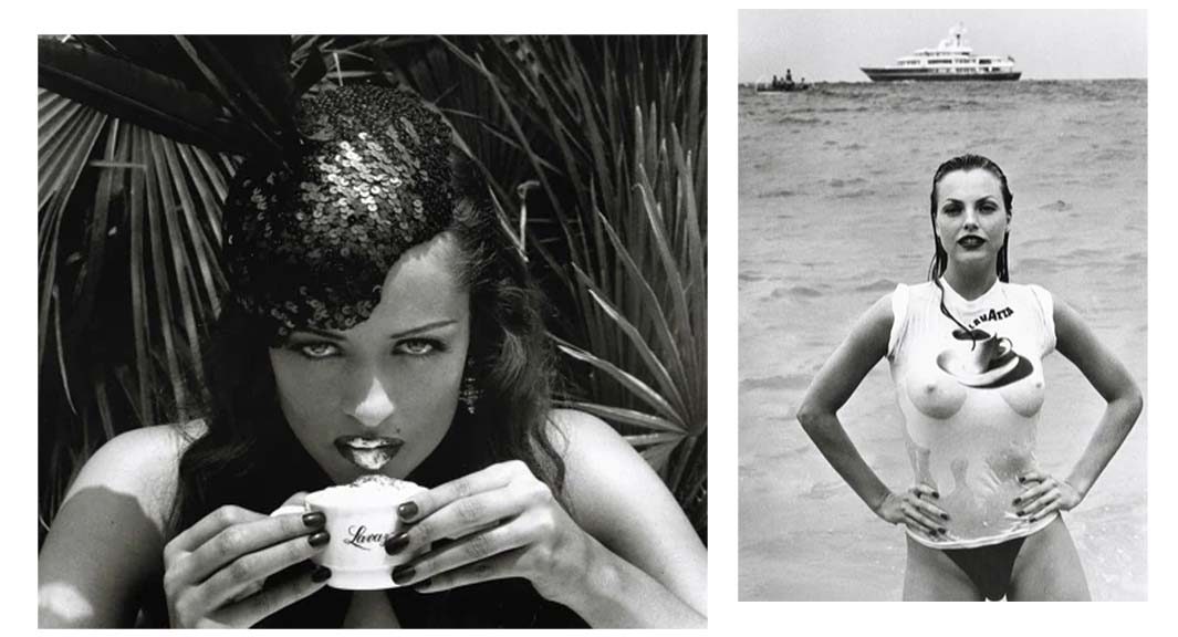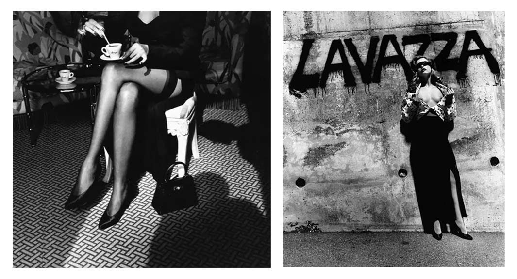 Lavazza entschied sich in zwei aufeinanderfolgenden Jahren, 1993 und 1994, für den Fotografen Helmut Newton. Sein Stil ist perfekt, um die Leidenschaft für Kaffee zu vermitteln. Seine Fotografien stellen, wie es bei Kalendern häufig der Fall ist, die Frau in den Mittelpunkt des Bildes – eine Frau, deren Sinnlichkeit in diesen Schwarz-Weiß-Fotos an die Sinnlichkeit des Kaffees erinnert. Eine dunkel gekleidete Frau mit hohen Absätzen und sinnlichen Lippen, die an einem Tisch sitzt, blickt den Fotografen mit einer Tasse Kaffee in der Hand an. Eine andere Frau, selbstbewusst und elegant, in einen Pelzmantel gehüllt, zeigt dem Künstler ihr tiefes Dekolleté.