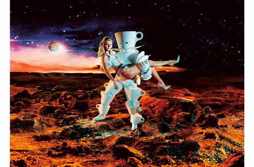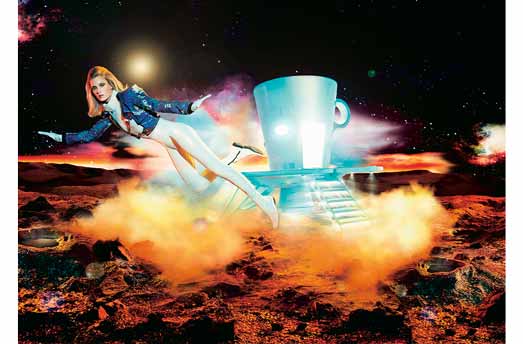 Im Kalender für 2004 geht die Espresso-Tasse in den Orbit und Le Gouès, der für diese Ausgabe auserkorene Fotograf, bildet eine Welt aus Kaffee und Zucker nach, die vage von der Pop- und Sci-Fi-Symbolik der 60er- und 70er-Jahre inspiriert ist. Die intergalaktische Reise führt uns zu einem physischen und mentalen Raum am Rande der Phantasie. Thierry Le Gouès ist vor allem als Modefotograf und Schöpfer renommierter Werbekampagnen bekannt. Er zeichnet sich durch zwei Werke der bildenden Kunst aus: Soul, inspiriert von Subsahara-Afrika, wo weibliche Aktdarsteller Skulpturen aus Ebenholz und Licht sind, und Popular, das seinen Betrachtern eine neue Vision von Kuba vermittelt.